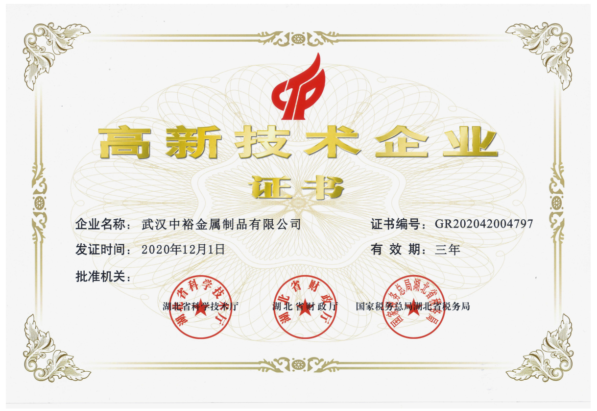 武漢中裕金屬制品有限公司(以下簡稱公司)成立于1996年8月,民營私人獨(dú)資企業(yè)。2010年8月投資1800余萬元,在前川油崗工業(yè)園征地20畝,新建5000平方米的生產(chǎn)車間和1100平方米的辦公大樓,2011年8月全部峻工投入使用。